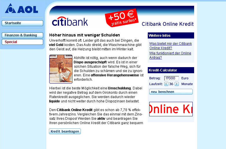 Chancen nutzen, wenn sie sich bieten - alles möglich mit dem Citibank Online Kredit. Und als Bedienungsanleitung schaltete Citibank ein Kredit-Special bei AOL.