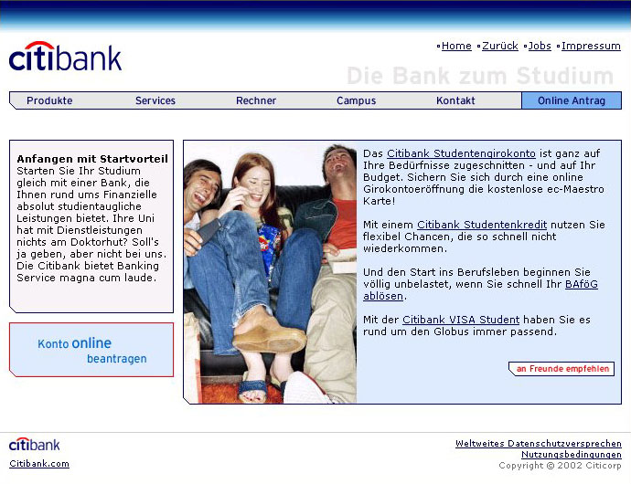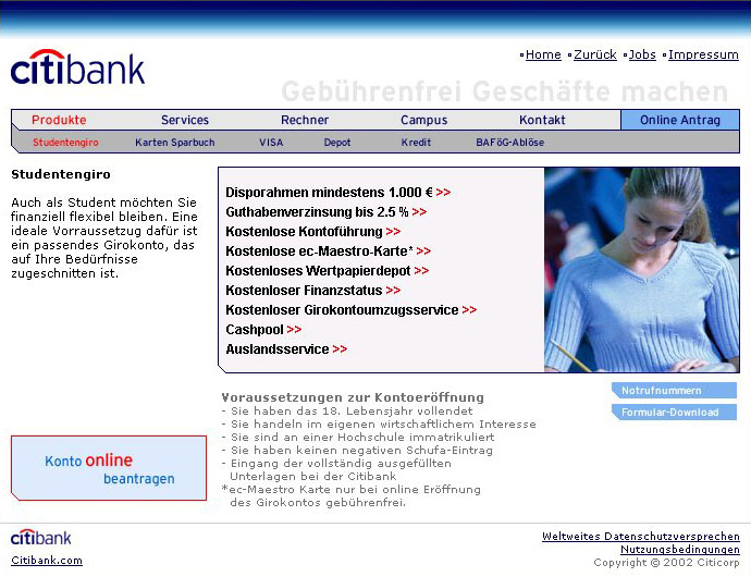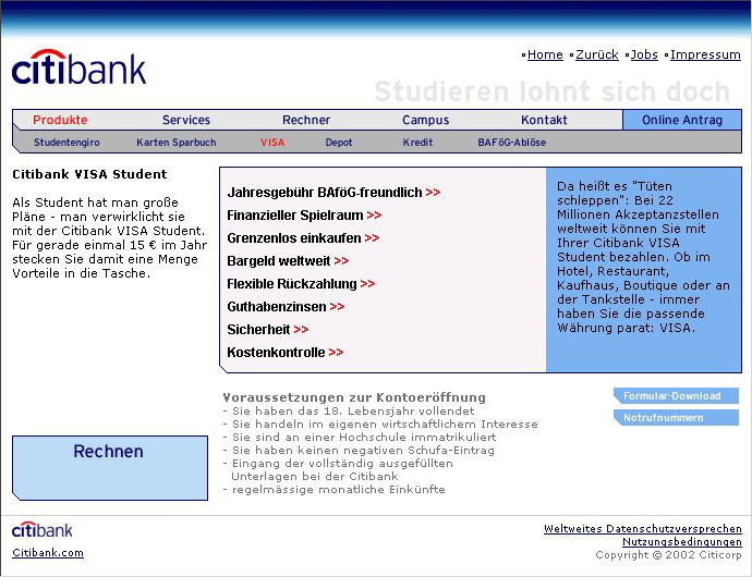 Citibank ist die beste Studentenverbindung in Sachen Finanzen. Ganz im diesen Sinne widmet sich die Citibank Studenten Microsite dem akademischen Volke.