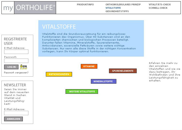 Ein Nährstoff-Finder und umfassende Informationen zur orthomolekularen Medizin eröffneten dem User dem Web zum individuellen Vitalstoff-Paket.