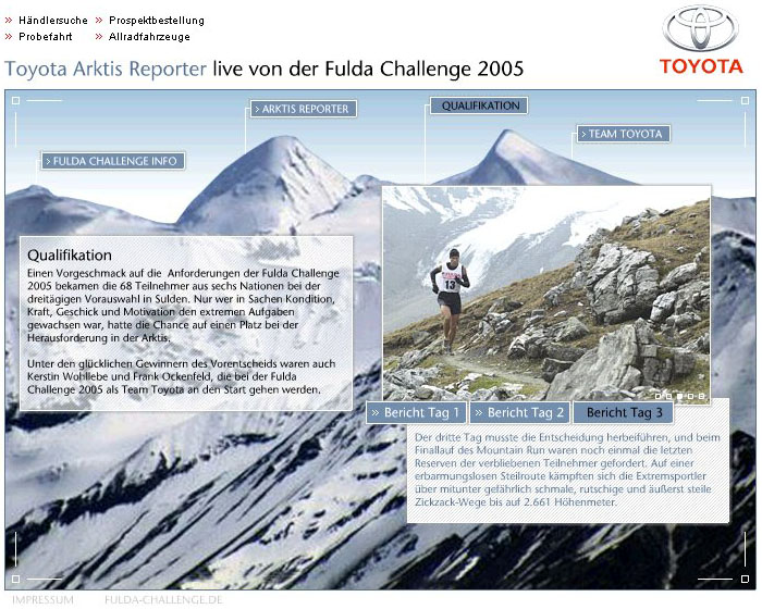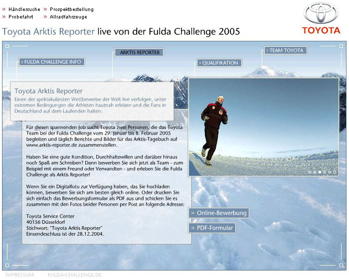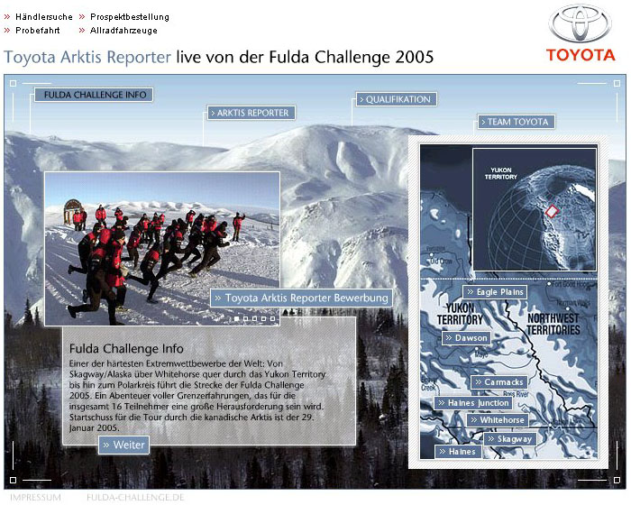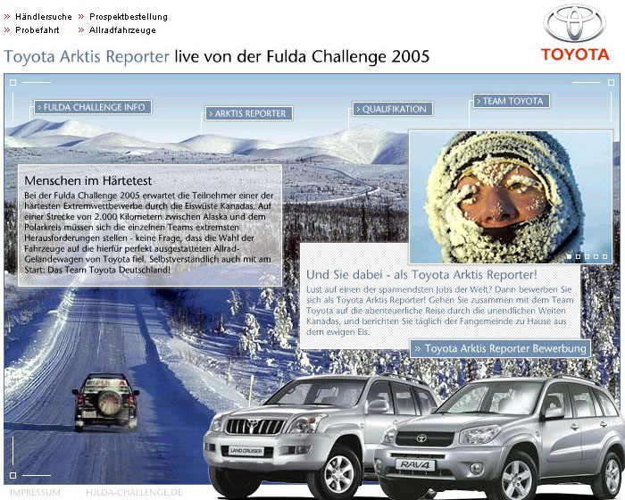 Bei der „Fulda-Challenge” sandte Toyota zwei Reporter mit in die Arktis, die auf dieser Website über ihre Abenteuer berichteten.