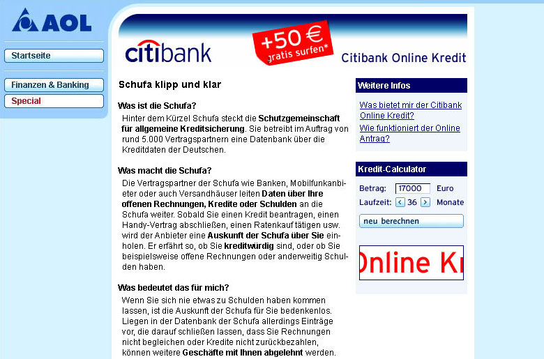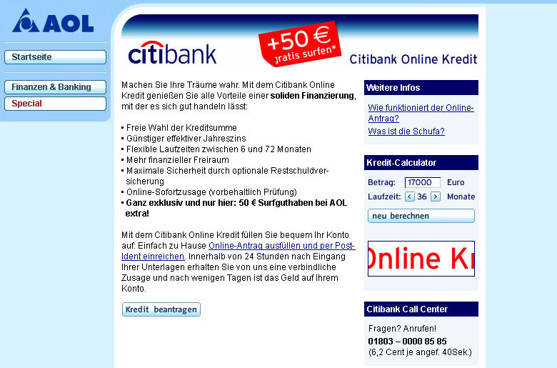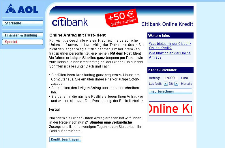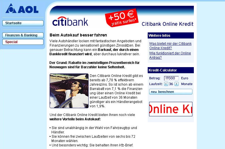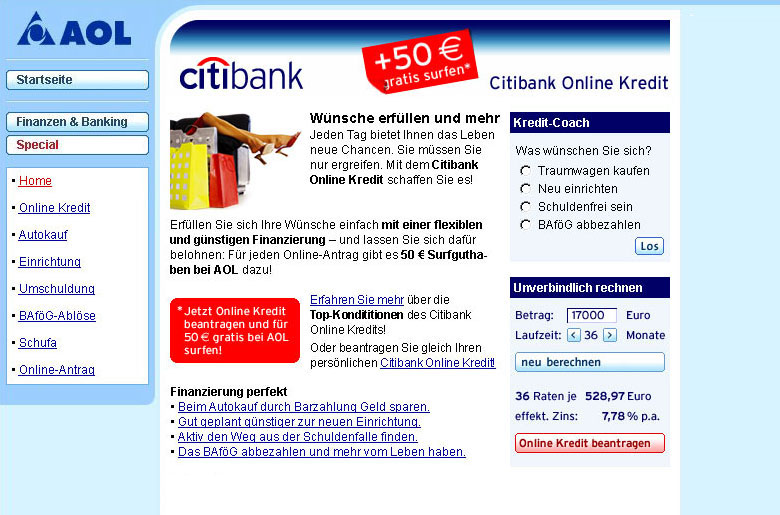 Chancen nutzen, wenn sie sich bieten - alles möglich mit dem Citibank Online Kredit. Und als Bedienungsanleitung schaltete Citibank ein Kredit-Special bei AOL.