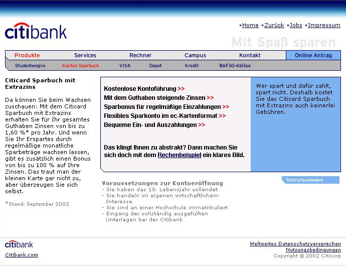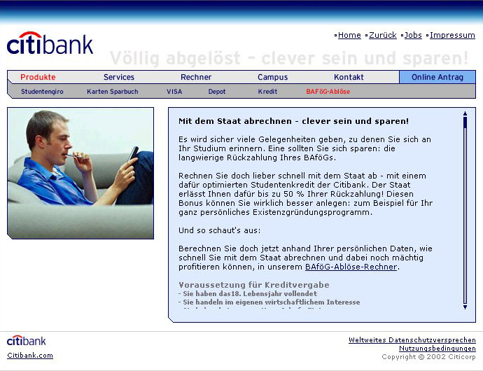 Citibank ist die beste Studentenverbindung in Sachen Finanzen. Ganz im diesen Sinne widmet sich die Citibank Studenten Microsite dem akademischen Volke.