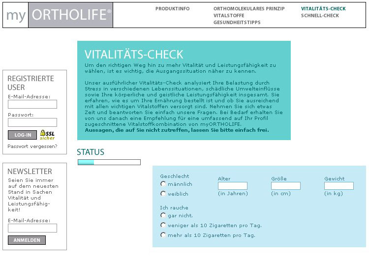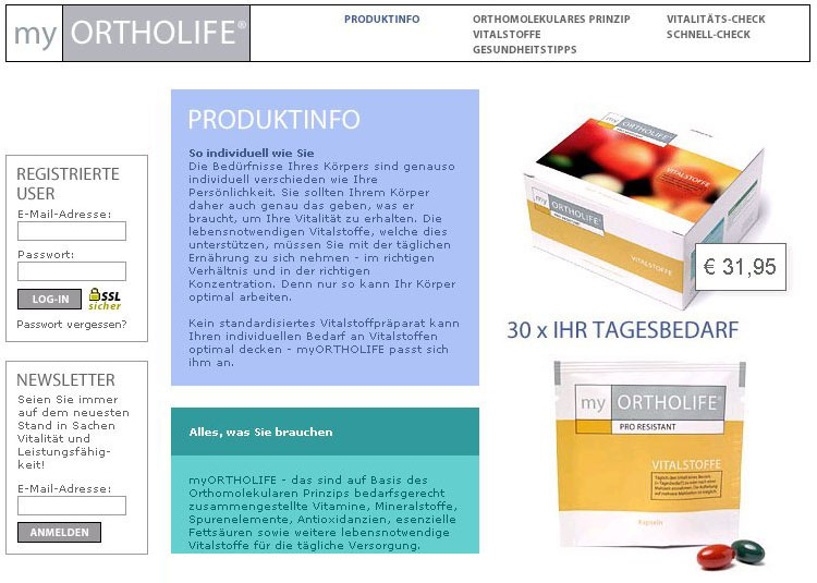 Ein Nährstoff-Finder und umfassende Informationen zur orthomolekularen Medizin eröffneten dem User dem Web zum individuellen Vitalstoff-Paket.
